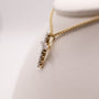 Diamonds are set in 14k white gold prongs upon a 14k yellow gold mounting. There are 0.71 total carat weight of diamonds. The pendant features a hidden bail.