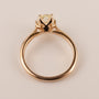 10.3x7mm oval diamond is 6-prong set in 14k rose gold.