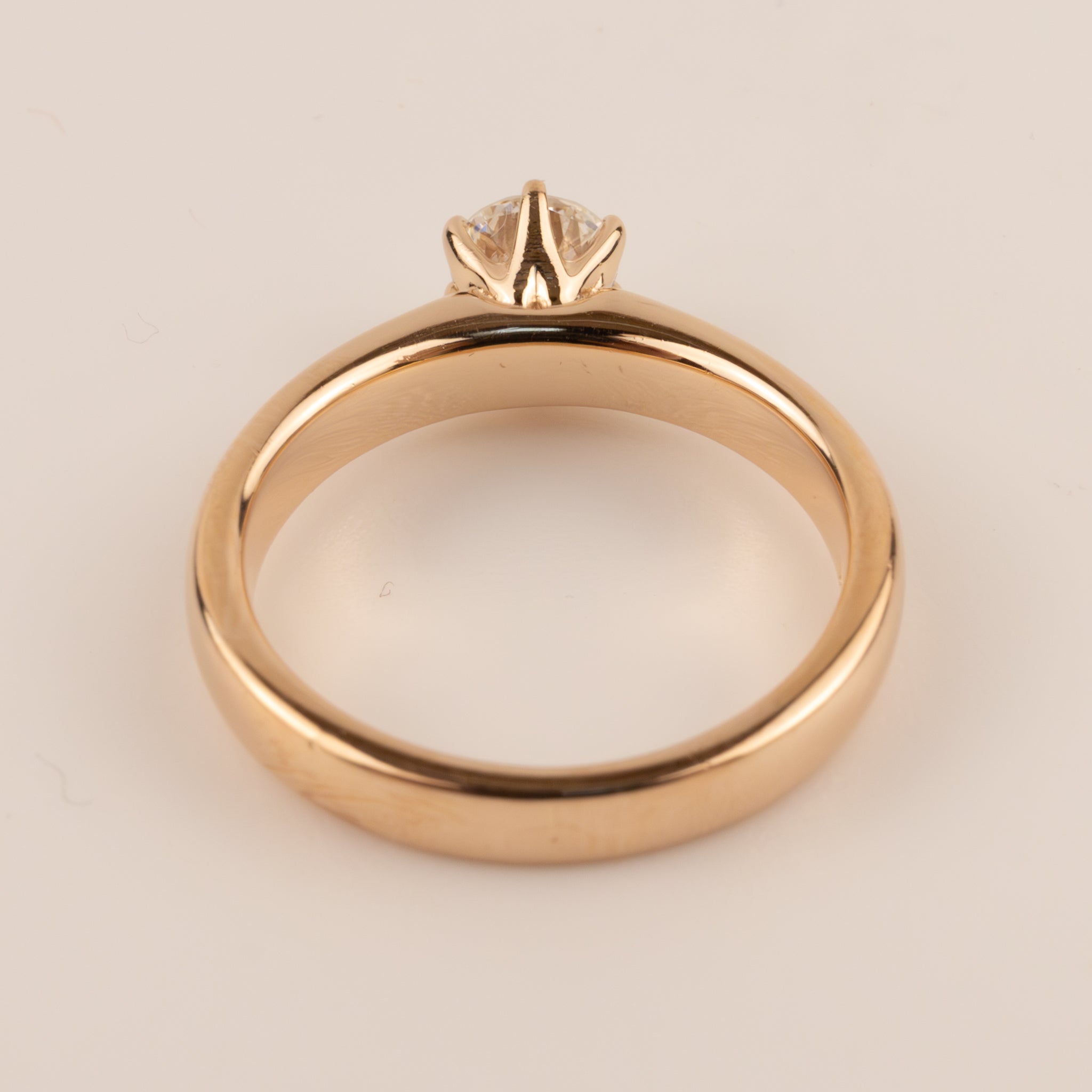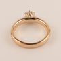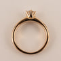 One round 5mm diamond is set with 6 prongs in 14k rose gold.