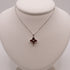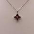 Four pear garnets are set in 14k white gold. One diamond is set in the center. There is 0.79 total carat weight of garnets. There is 0.03 total carat weight of diamonds. The pendant is paired with an 18" cable chain.