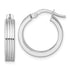Tube hoops are made of 14k white gold. The earrings measure 4mm wide and 18mm long. The earrings feature a grooved texture. The earrings closure is wire and clutch.