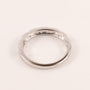 Diamonds are shared prong set in 14k white gold. There are 0.06 total carat weight of diamonds. The ring features a milgrain grid design.