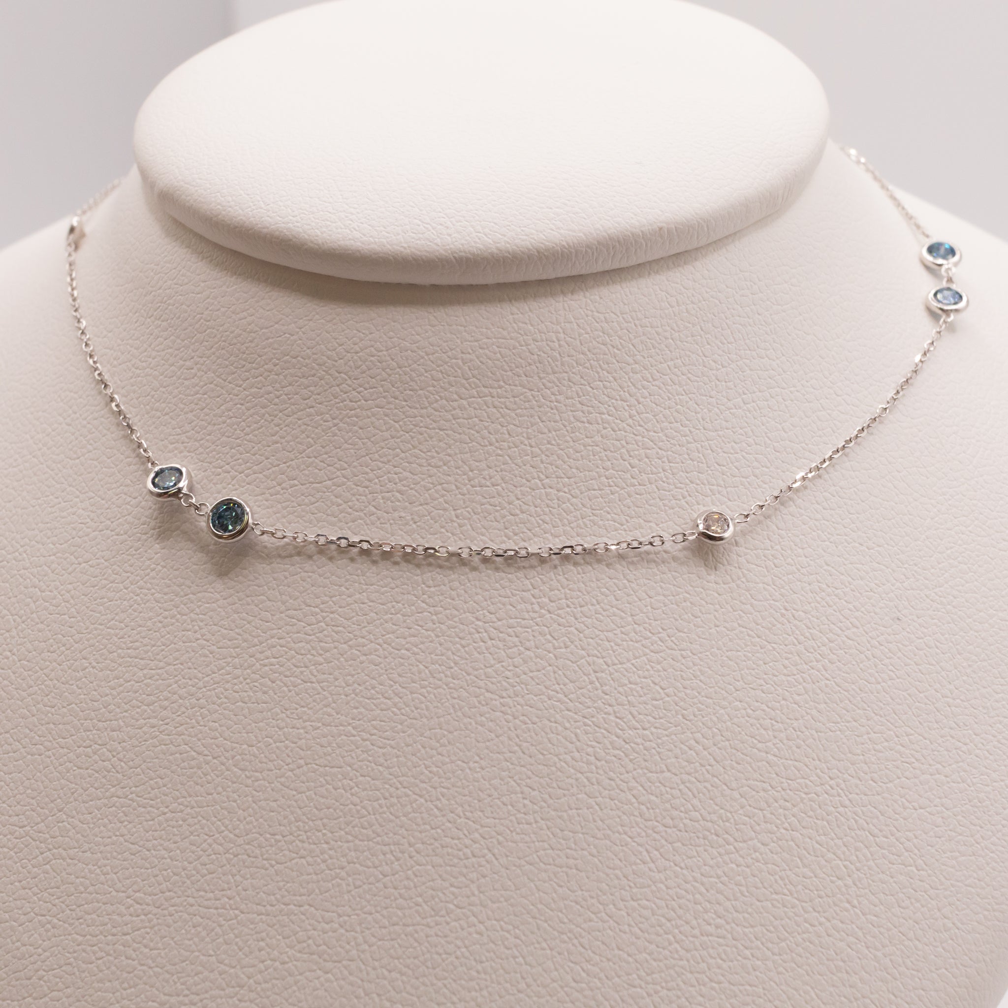 14KWG Lab Grown White and Blue Diamond Station Necklace