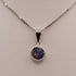 One round Boulder opal doublet is bezel set in 14k white gold.