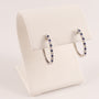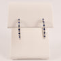 Blue sapphires and diamonds are shared prong set in 14k white gold. There are 0.15 total carat weight of sapphires. There are 0.15 total carat weight of diamonds. The earrings are 17.5mm in length and 1.4mm wide. They feature a latch back closure.
