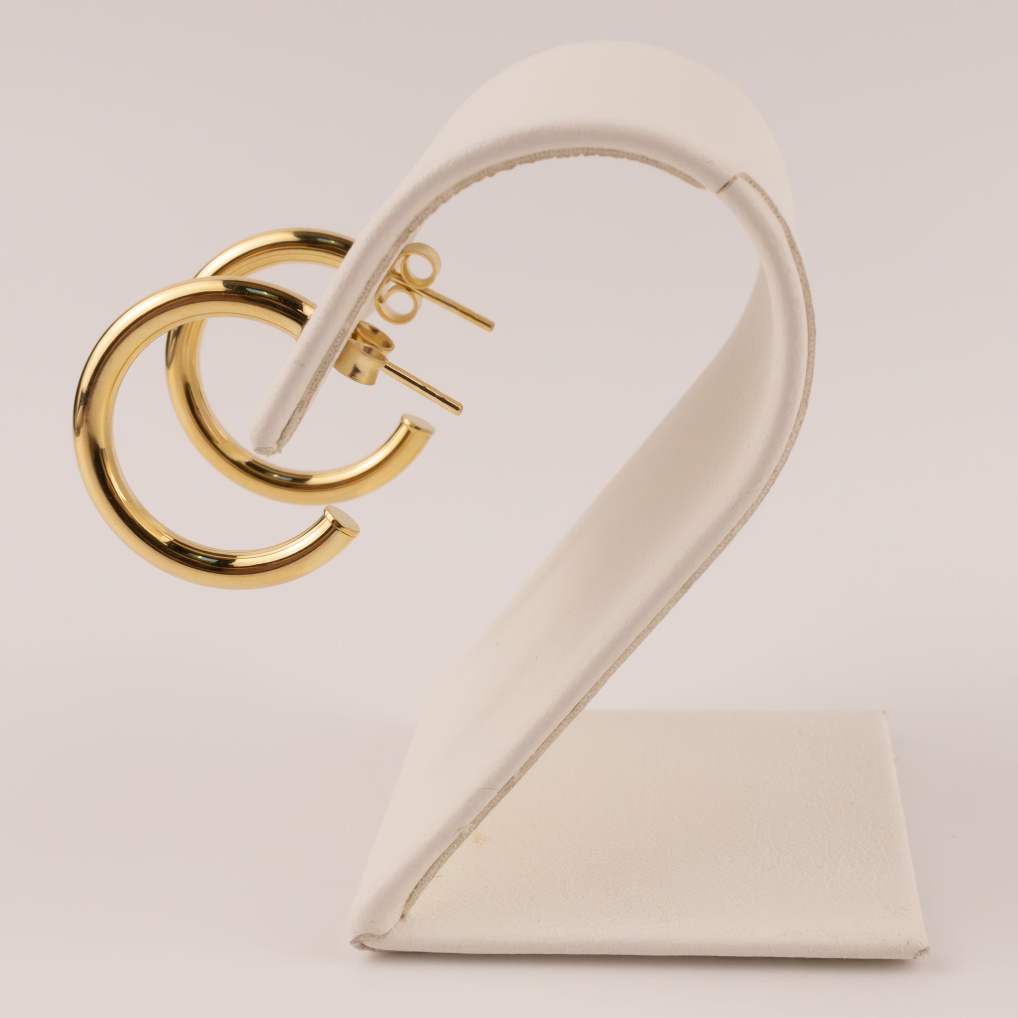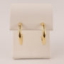 Hollow tube hoops are made of 14k yellow gold. The earrings measure 2.5x20mm. The hoops are on posts.