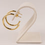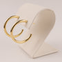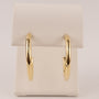 Hollow tube hoops are made of 14k yellow gold. The earrings measure 2.5x25mm. The hoops are on posts.