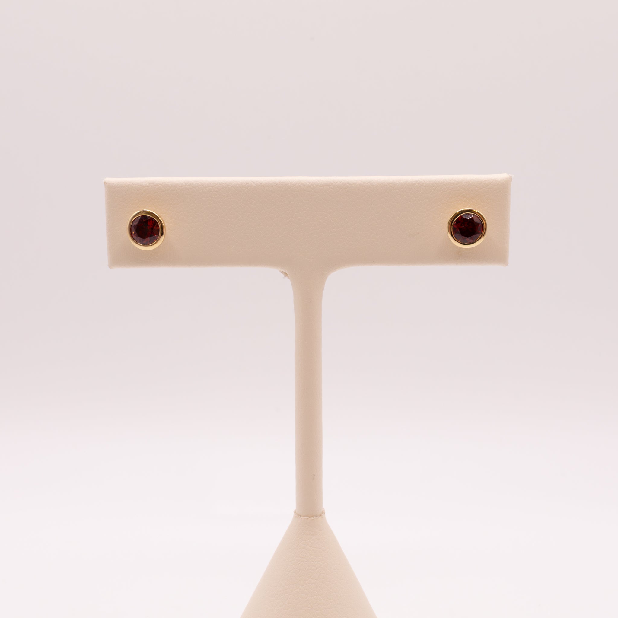 14KYG Mozambique Garnet Bezel Set Stud Earrings