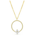4 diamonds are cluster set on a 14k yellow rope circle. There is 0.14 total carat weight of diamonds. The pendant is paired with an 18" cable chain.