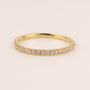 Diamonds are set halfway around a 14k yellow gold ring. There are 0.20 total carat weight of diamonds.