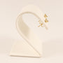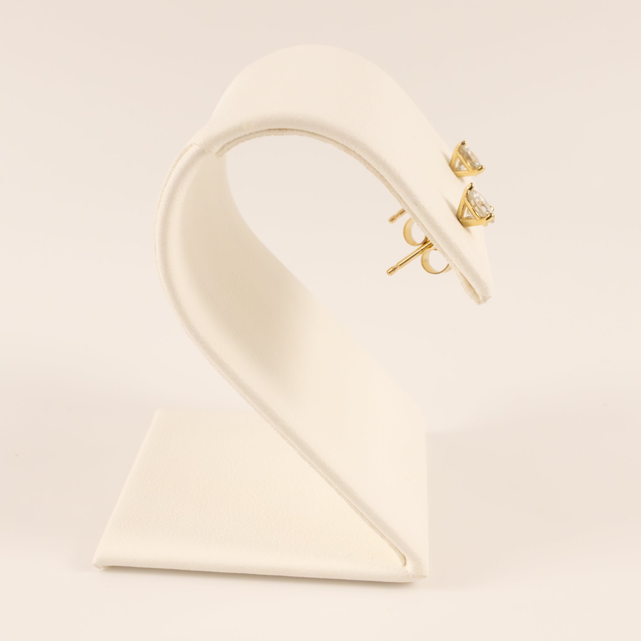 Round diamonds are 3-prong set in 14k yellow gold. There are 0.51 total carats of diamonds. The color grade is H. The clarity is I1.