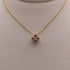 Four 2.5mm diamonds are shared prong set in 14k yellow gold. There are 0.28 total carat weight of diamonds. The pendant slides on a 16-18" cable chain.