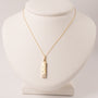 Round diamonds are flush and prong set in 14k yellow gold. There are 0.09 total carat weight of diamonds. The pendant is on an 18" light rope chain with a spring ring clasp.