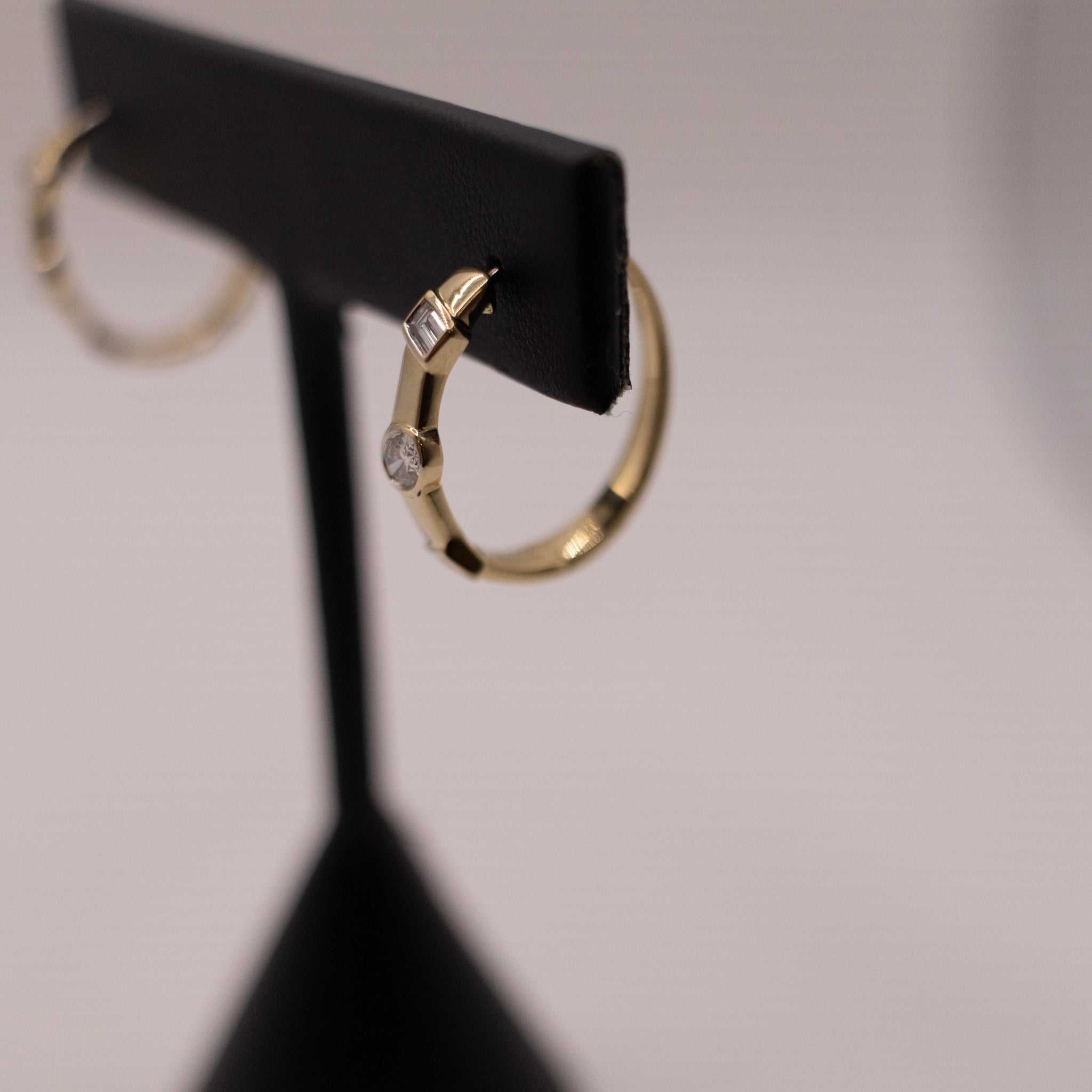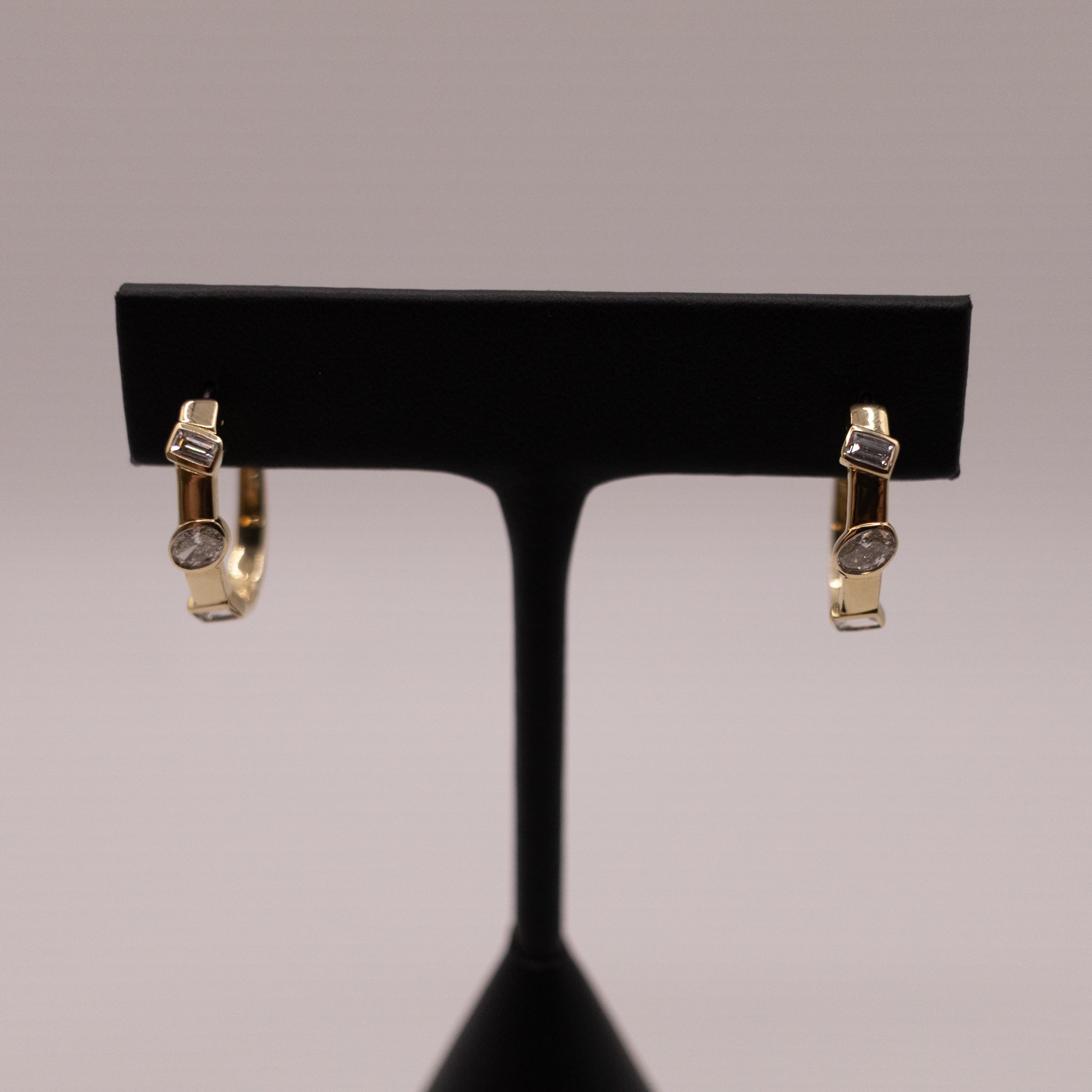 14KYG Diamond Oval and Baguette Flush Set Hoop Earrings