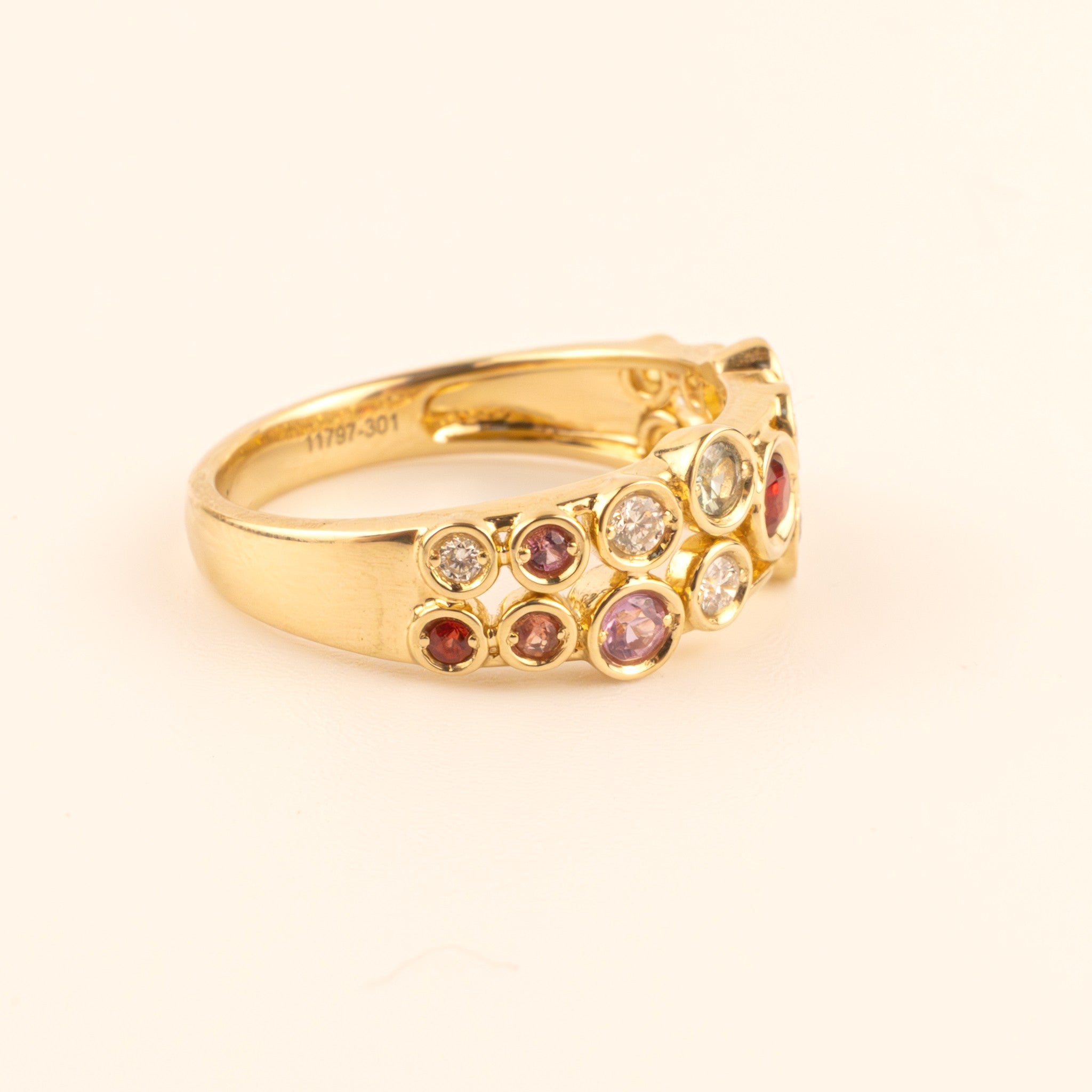 14KYG Multi-Color Sapphire 0.44cttw and Diamond 0.14cttw Bezel Bubble Ring 2.5DWT