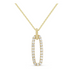 Diamonds set in an oblong 14k yellow gold mounting. There is 0.16 total carat weight of diamonds. The pendant is on an 18" cable chain.