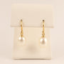 Freshwater pearls are set on 14k yellow gold posts. The pearls measure 9x12mm. The earrings are 1" in length and feature a shepherd's hook post.