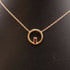One baguette cut pink tourmaline is set in 14k yellow gold. The pink tourmaline measures 4x2mm. A 14k yellow gold open circle surrounds the stone. The pendant is fixed to a 16-18" cable chain.