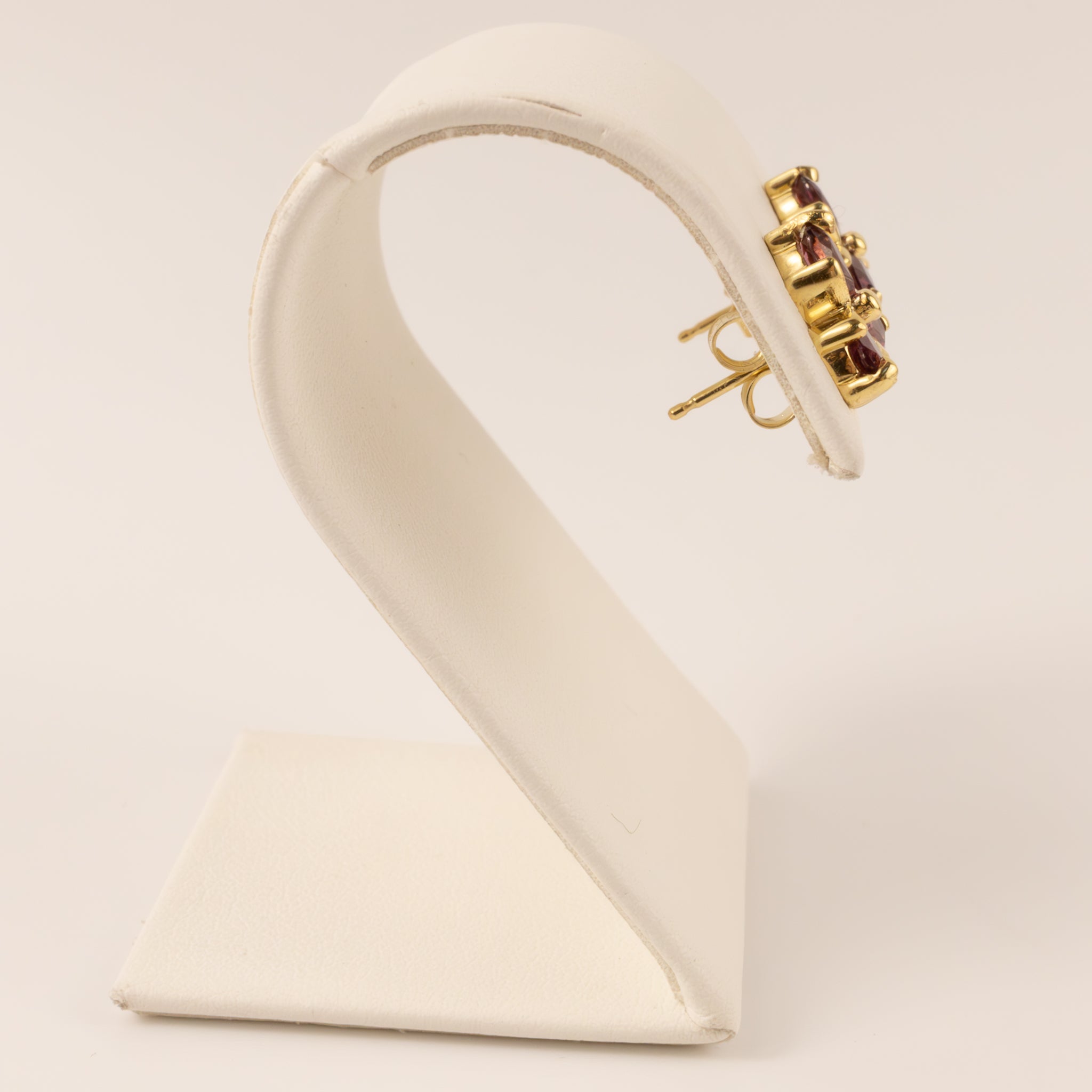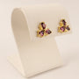 14KYG Rhodolite Garnet Three-Stone Flower Stud Earrings