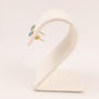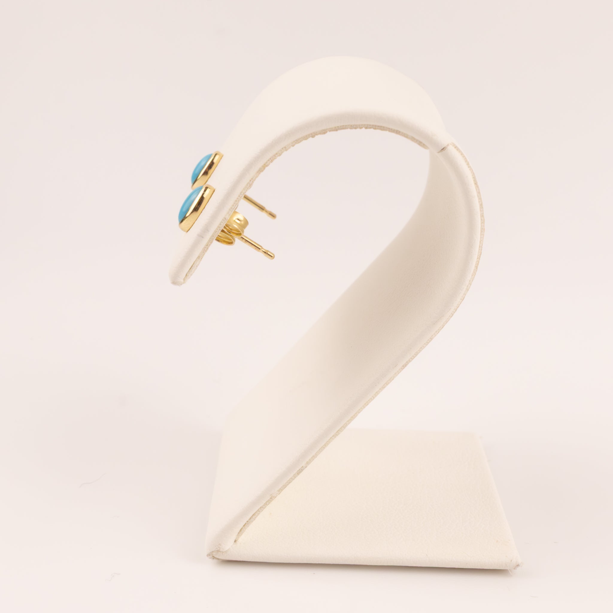 Oval cabochon turquoise are bezel set in 14k yellow gold. The earrings measure 5x3mm.