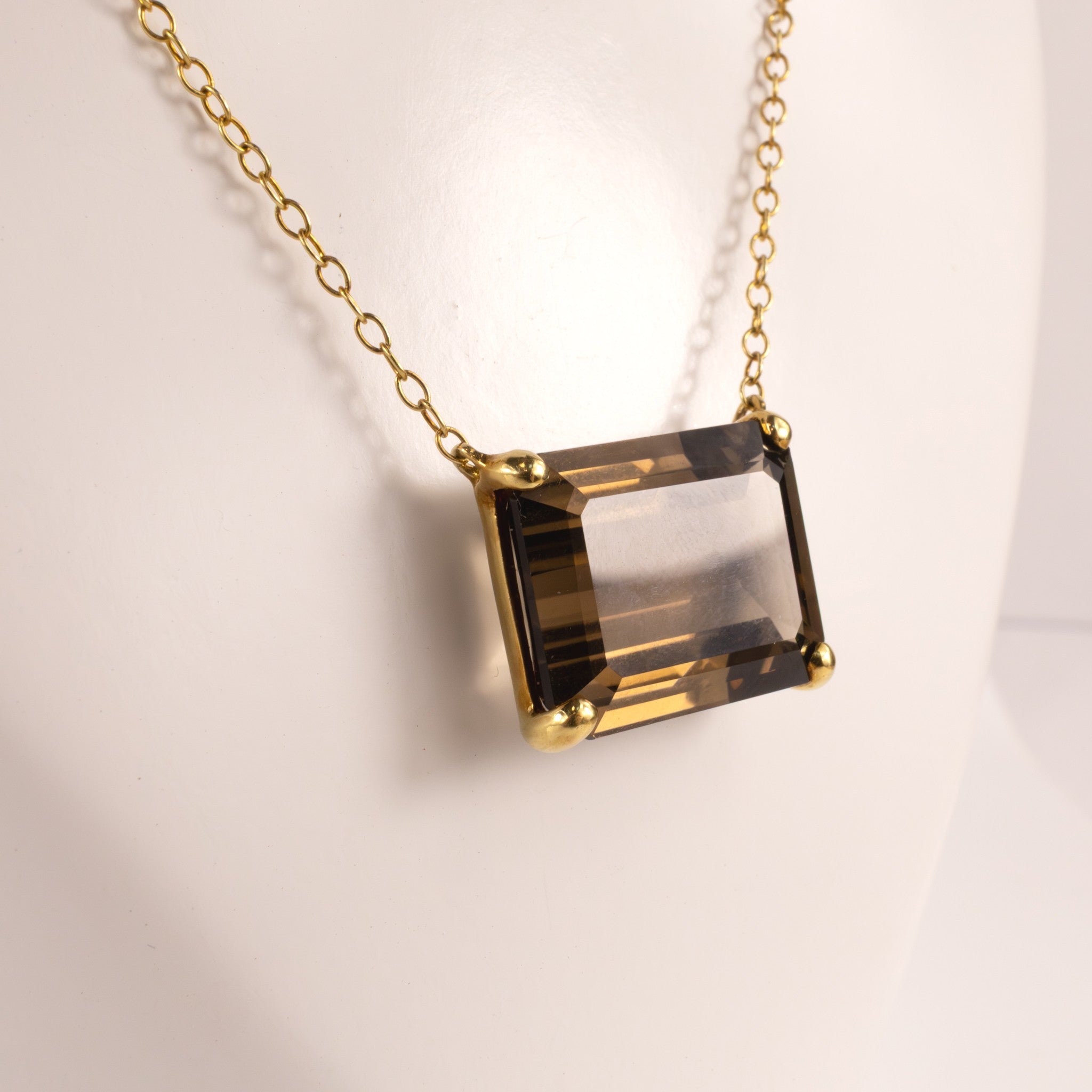 18KYG Smoky Quartz Emerald Cut Necklace