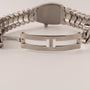 The watch features a quartz movement. It has a 22mm stainless steel case and features a blue sapphire on the crown. The stainless steel bracelet has all original links and measures 6". The bracelet features a butterfly clasp.