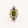 Platinum Vintage Peridot, Sapphire, and Diamond Ring