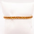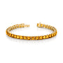 This tennis bracelet has 3.5mm bufftop citrines set in 14k yellow gold. There are 13.26 total carat weight of citrines. The bracelet is 7" long and features a safety latch closure.