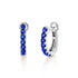 Round 2mm blue sapphires set in 14k white gold. There are 0.40 total carat weight of sapphires. The earrings feature hinged omega back closures.