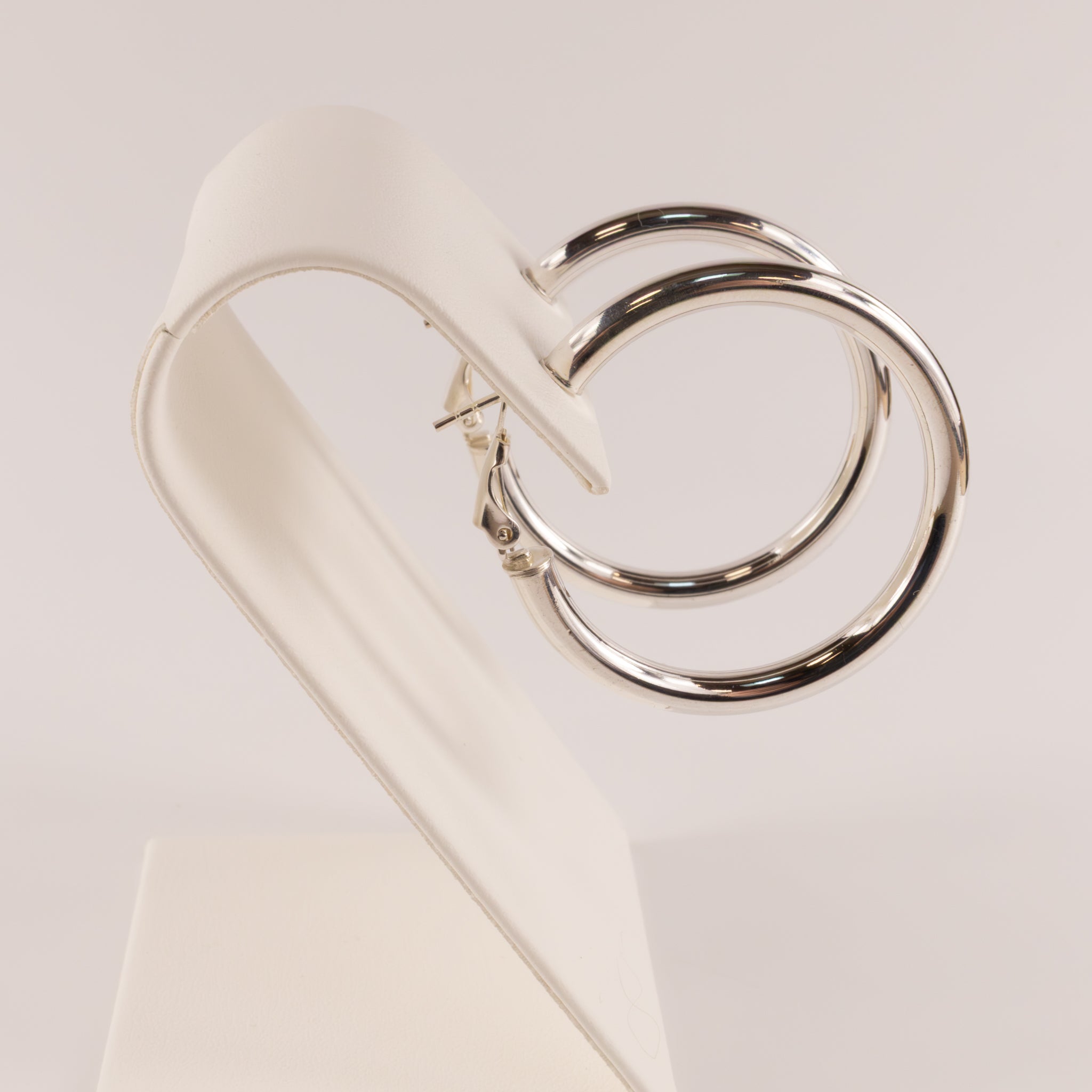 40x4mm hollow tube hoops are made of sterling silver. The earrings feature an omega back closure.