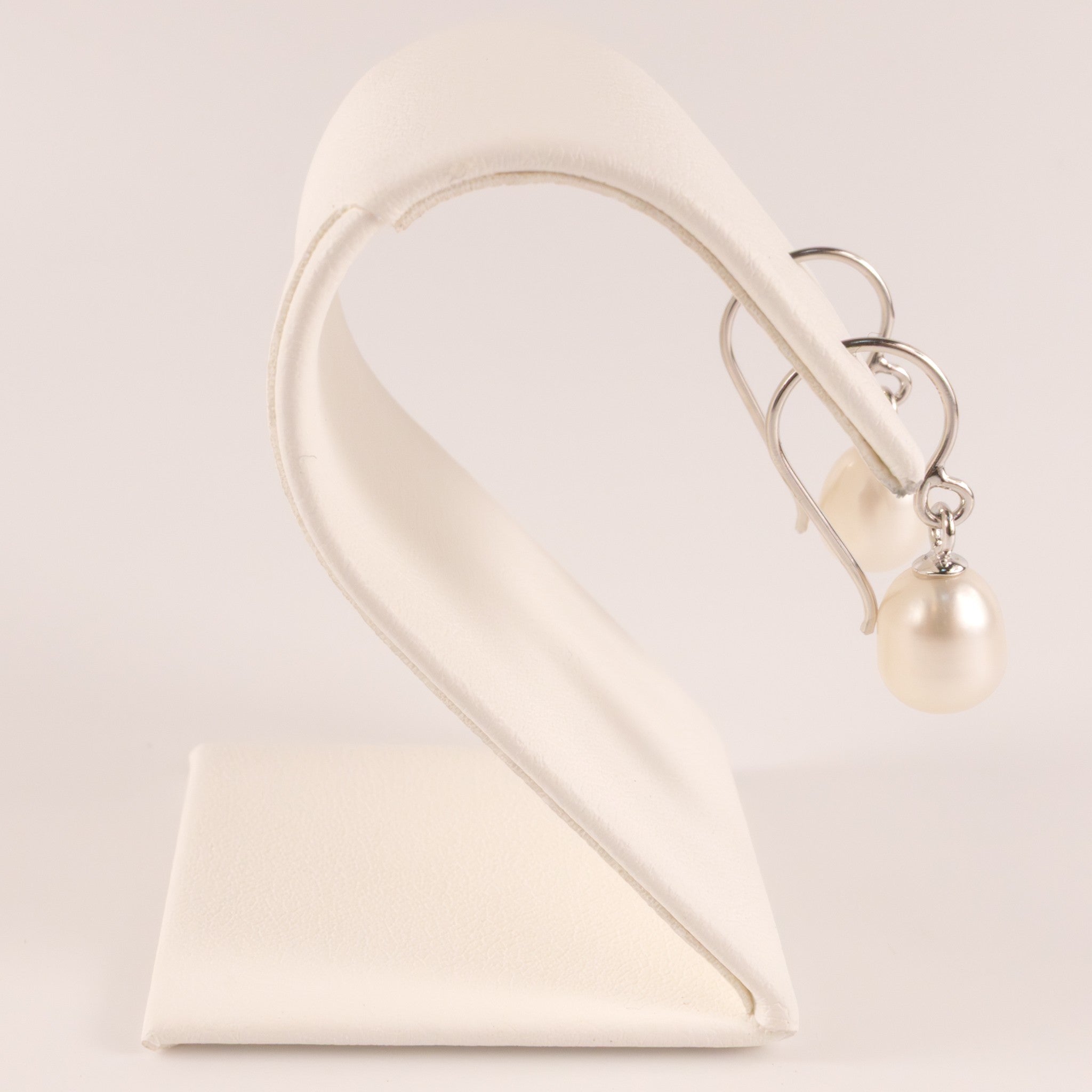 8mm cultured freshwater pearls are set on sterling silver. The earrings feature shepherds hooks. The earrings measure approx. 3/4" in length.