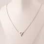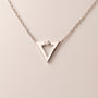 One diamond is bezel set in sterling silver. There is 0.01 total carat weight of diamonds. The pendant is fixed on an 18" cable chain.