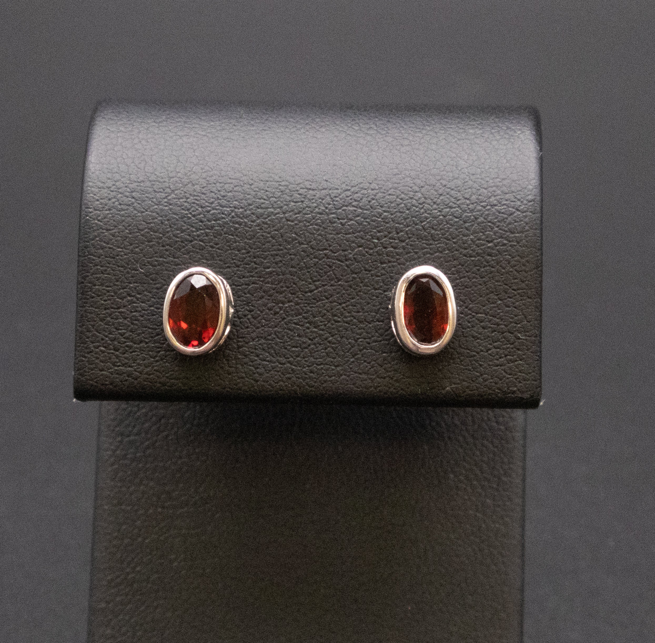 Sterling Silver Garnet Bezel Set Stud Earrings