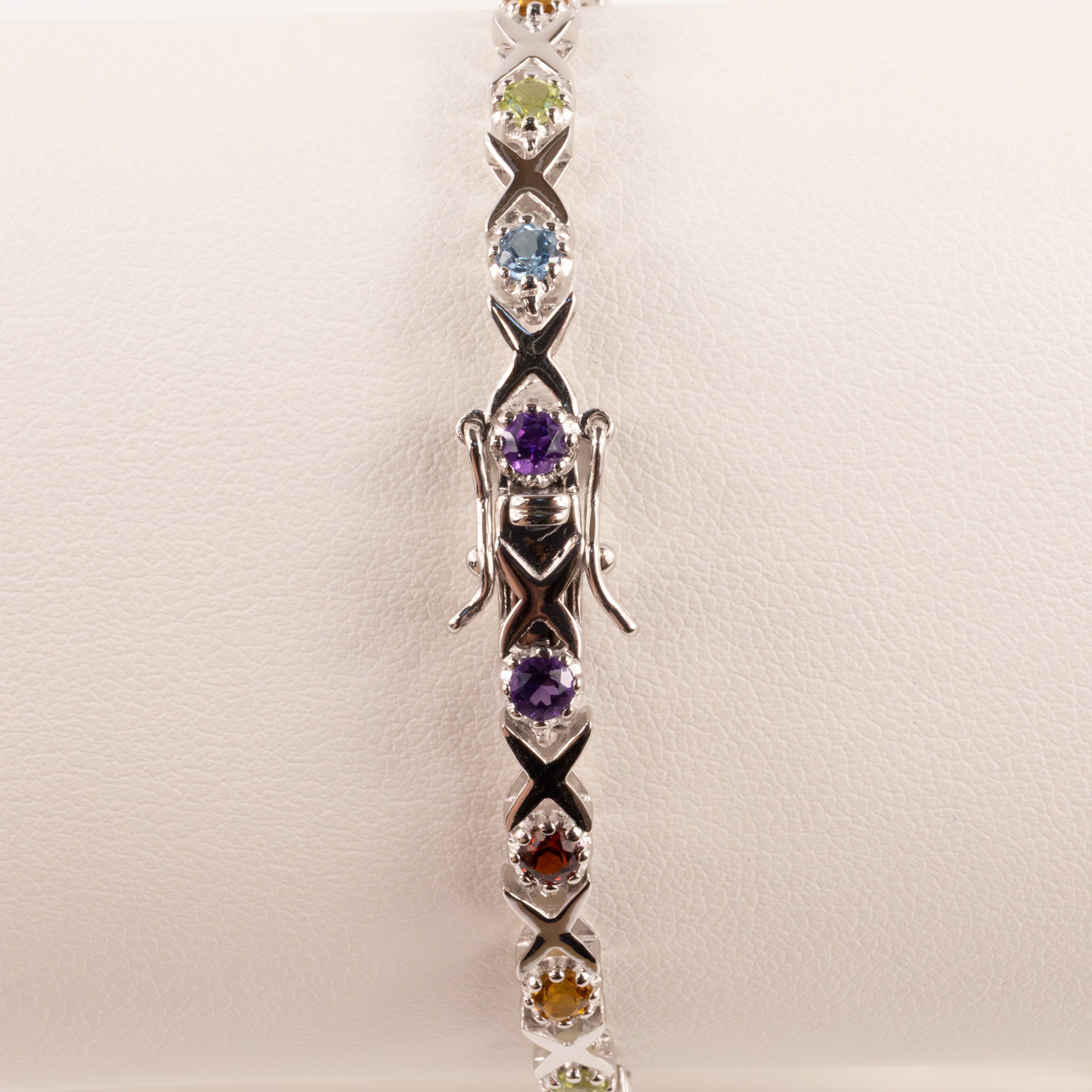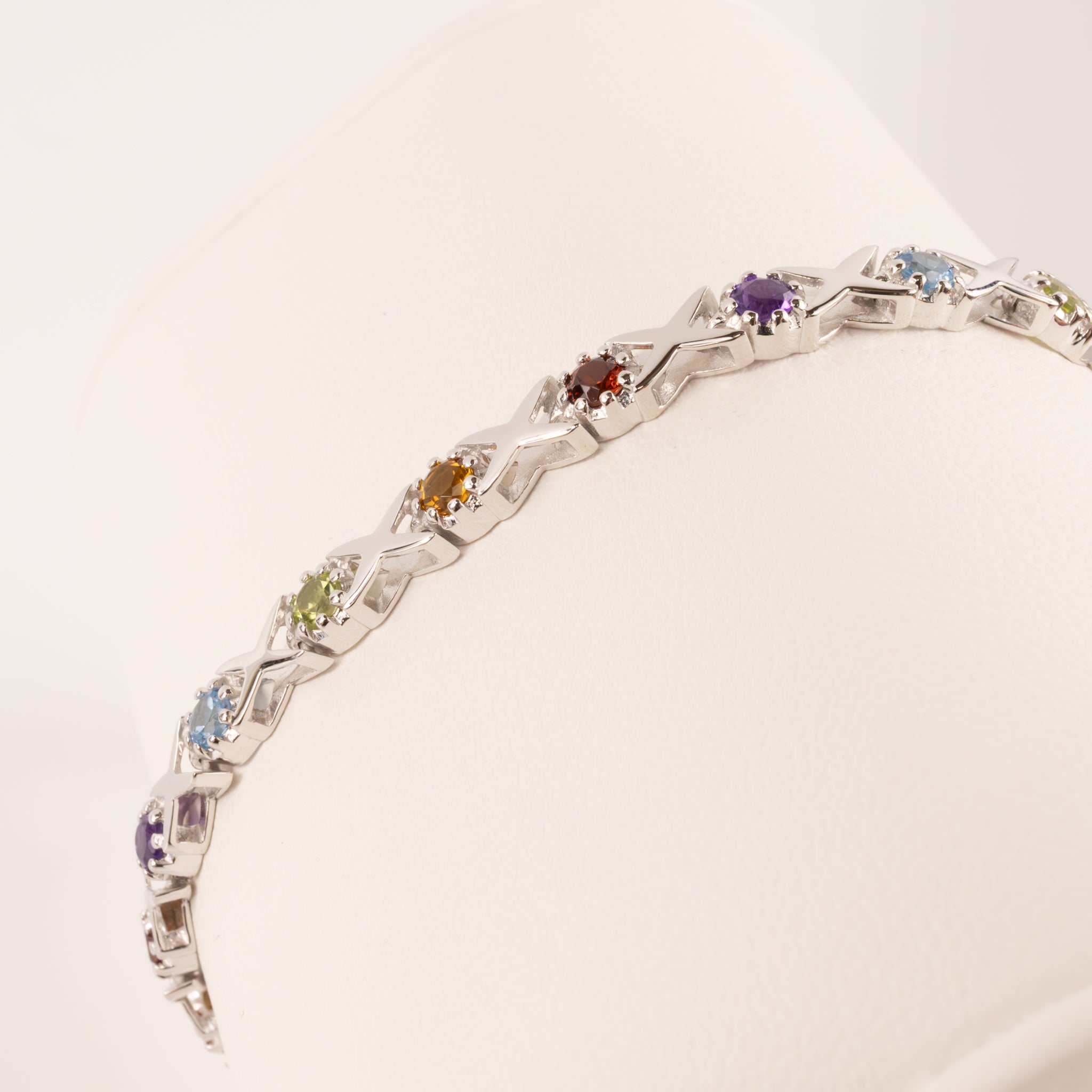 Sterling Silver Topaz, Citrine , Amethyst, Peridot, and Garnet Cross-Stich Bracelet