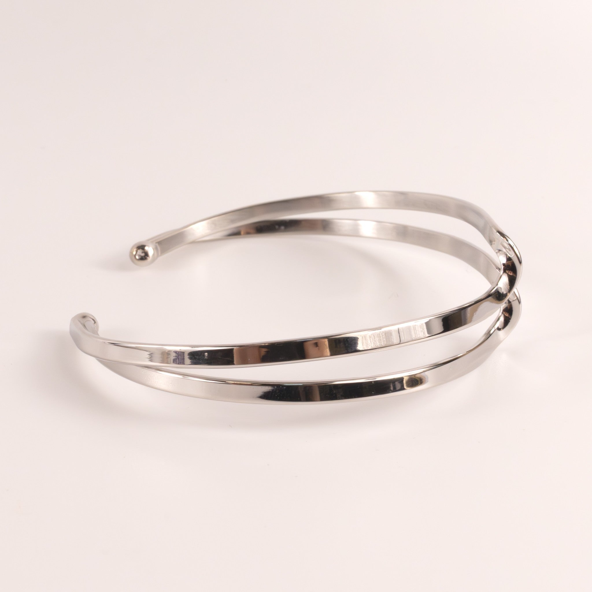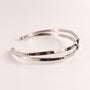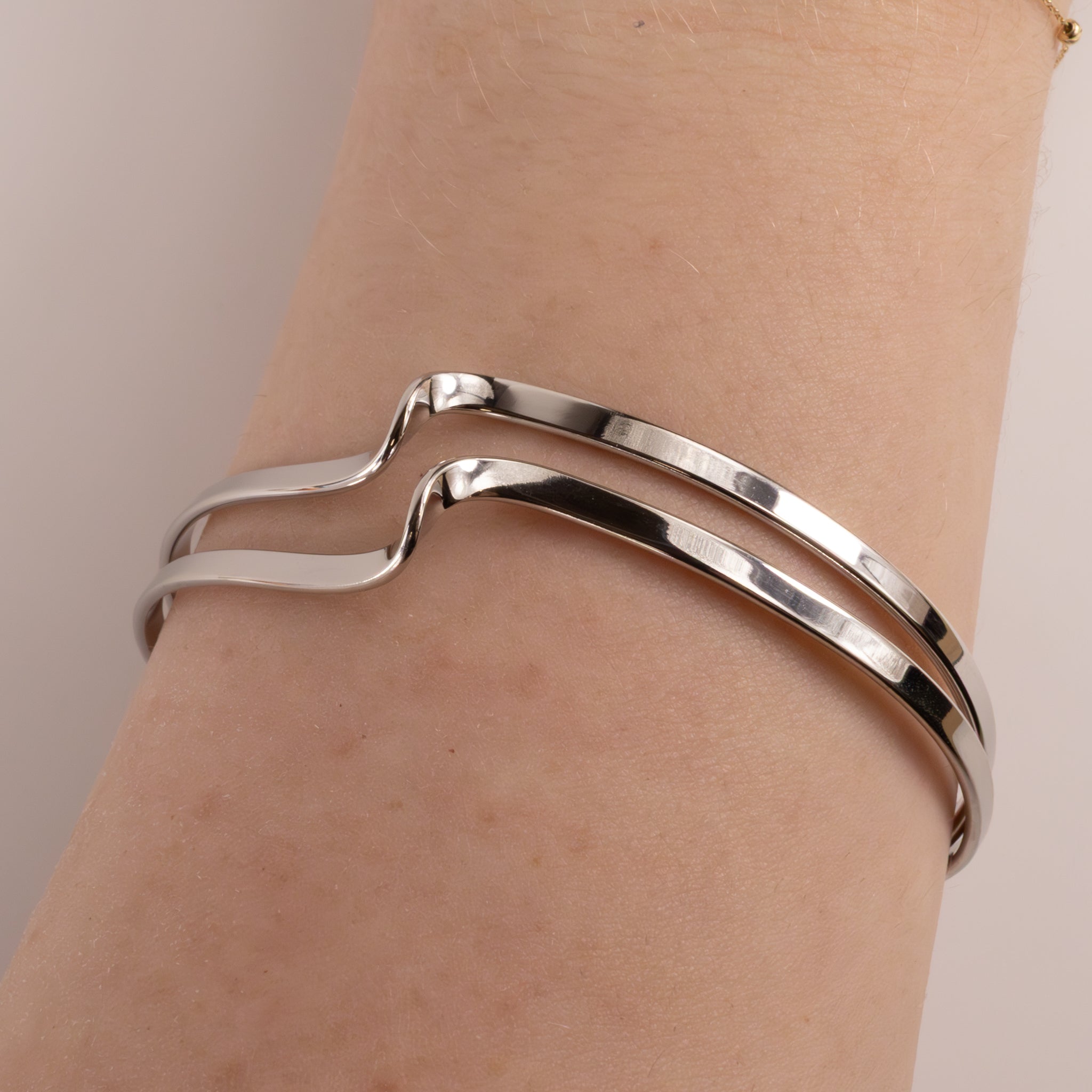 This bangle is made of sterling silver. It features a two-row wave. The bracelet is for a 7" wrist. It is 18.5mm at its widest point.
