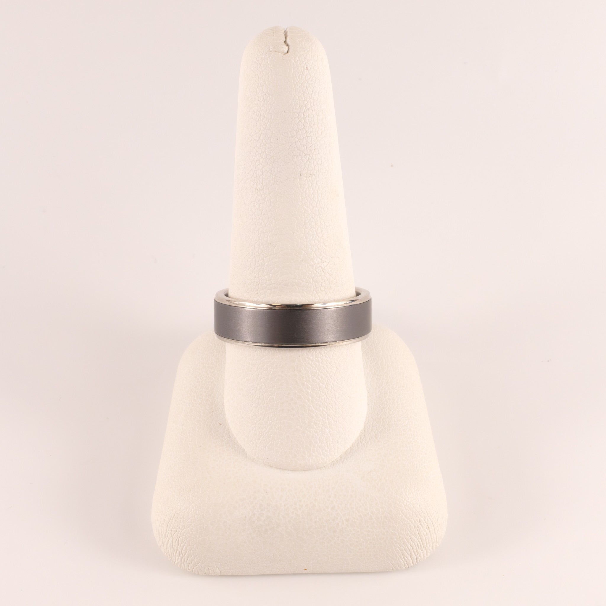Mens 6.5mm ring is made of tantalum & 14k white gold. The ring features a tantalum brushed finish center.